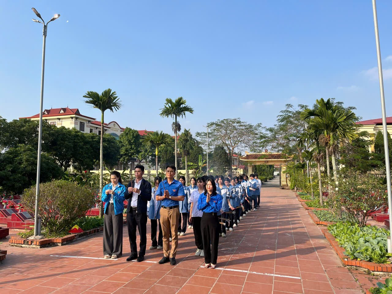 Trong không khí trang nghiêm và thành kính, đoàn đã dâng hoa và thắp những nén tâm hương lên đài tưởng niệm. Trước anh linh của các liệt sĩ – những người con ưu tú của quê hương, những chiến sĩ Quân đội Nhân dân Việt Nam anh hùng, các đoàn viên, thanh niên đã bày tỏ lòng biết ơn vô hạn đối với sự hy sinh cao cả của các thế hệ cha anh cho nền hòa bình, độc lập của dân tộc hôm nay.