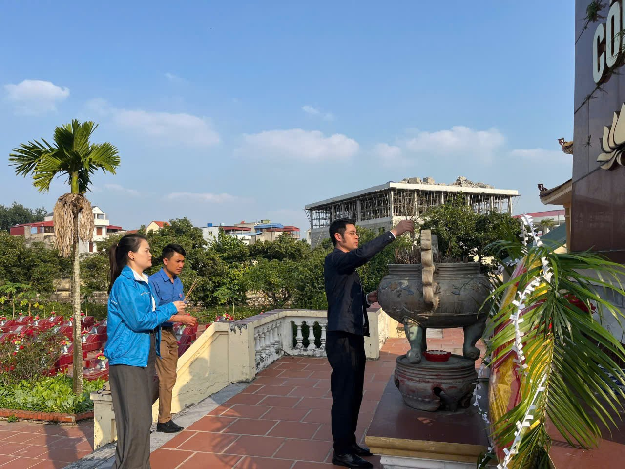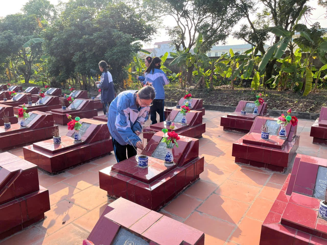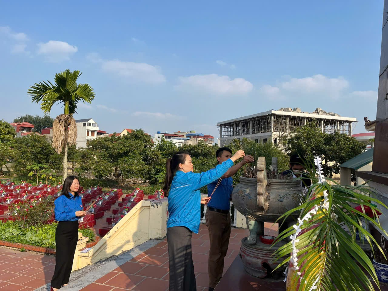 Sau nghi thức dâng hương, các đoàn viên, thanh niên đã cùng nhau vệ sinh, dọn dẹp toàn bộ khuôn viên nghĩa trang. Từng phần mộ được lau chùi cẩn thận, từng lối đi được quét dọn sạch sẽ. Đây là những hành động thiết thực, thể hiện đạo lý "Uống nước nhớ nguồn" và trách nhiệm của thế hệ trẻ trong việc chăm sóc, gìn giữ nơi an nghỉ của các anh hùng liệt sĩ.