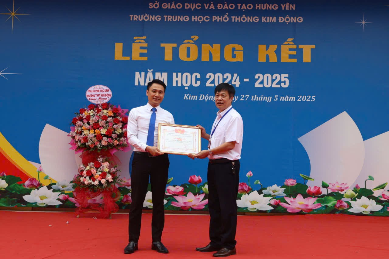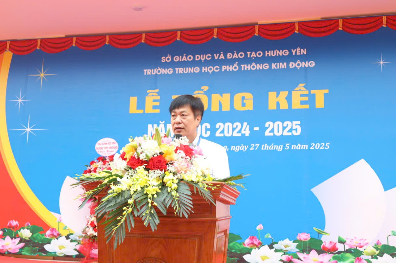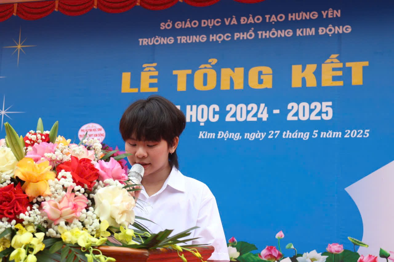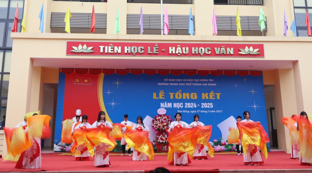 Lễ Tổng kết năm học 2024-2025 đã khép lại trong niềm hân hoan, tự hào và những cảm xúc lưu luyến. Đây không chỉ là dịp để tổng kết, đánh giá mà còn là cơ hội để thắt chặt thêm tình đoàn kết, tạo động lực mới cho một hành trình tiếp theo. Tập thể sư phạm Trường THPT Kim Động tin tưởng rằng, với nền tảng vững chắc và tinh thần quyết tâm, nhà trường sẽ tiếp tục gặt hái nhiều thắng lợi mới, xứng đáng với sự tin yêu của các cấp lãnh đạo, quý vị phụ huynh và các thế hệ học sinh. Chúc các em học sinh khối 12 tự tin bước vào kỳ thi quan trọng phía trước và đạt được kết quả như mong đợi. Chúc toàn thể các em học sinh có một kỳ nghỉ hè vui tươi, bổ ích và an toàn.