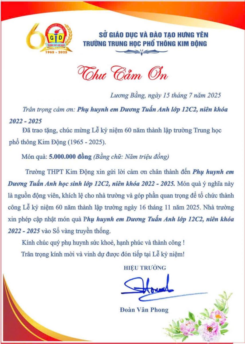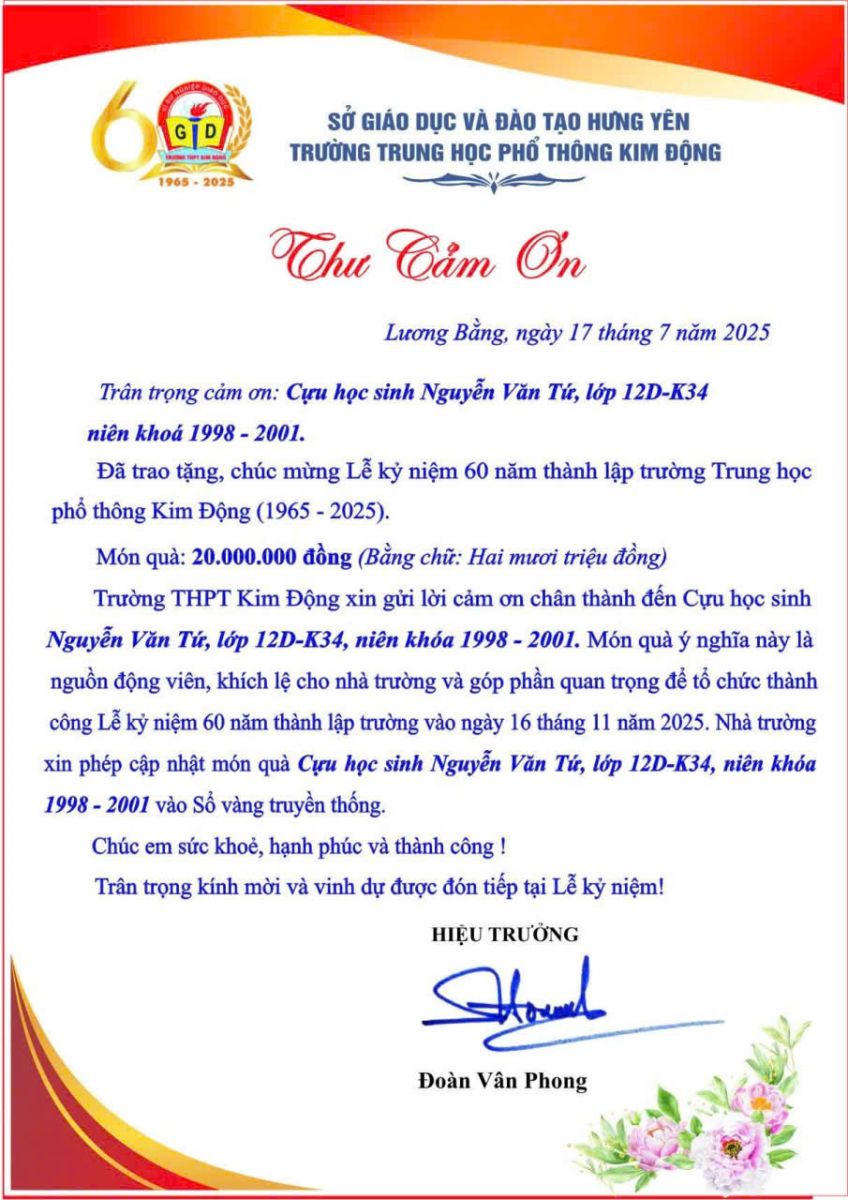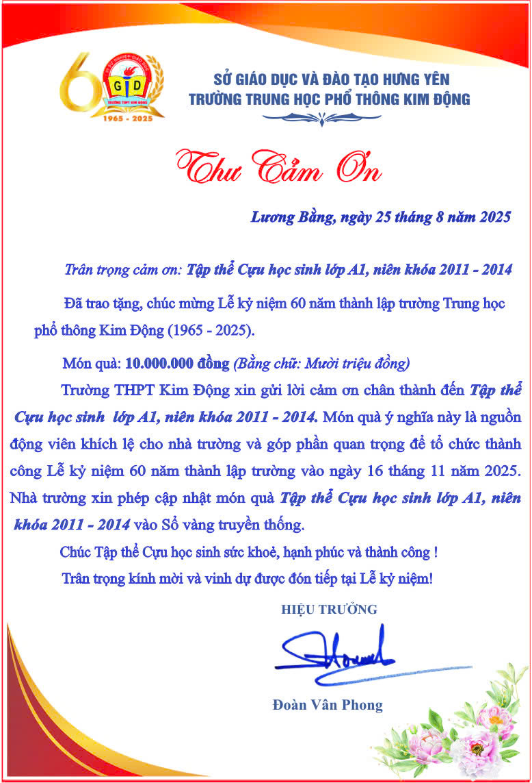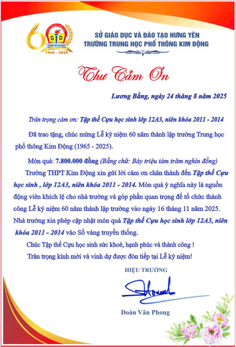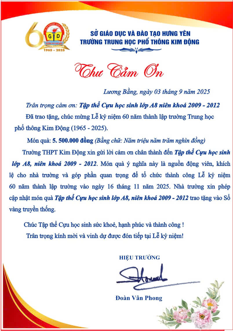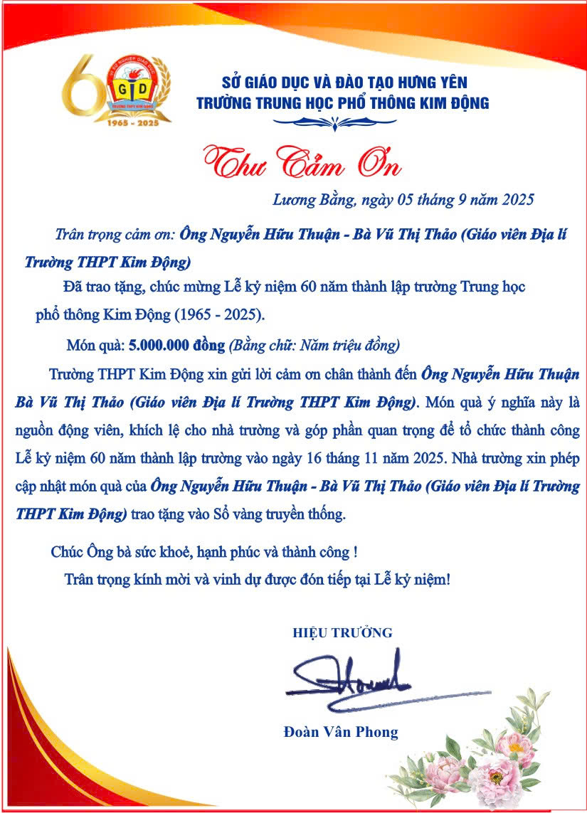 LỜI TRI ÂN TỪ PHƯƠNG NAM XA XÔI HƯỚNG VỀ 60 NĂM THÀNH LẬP TRƯỜNG THPT KIM ĐỘNG(24/07/2025)