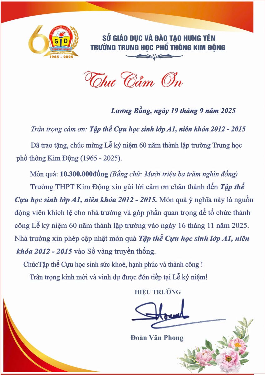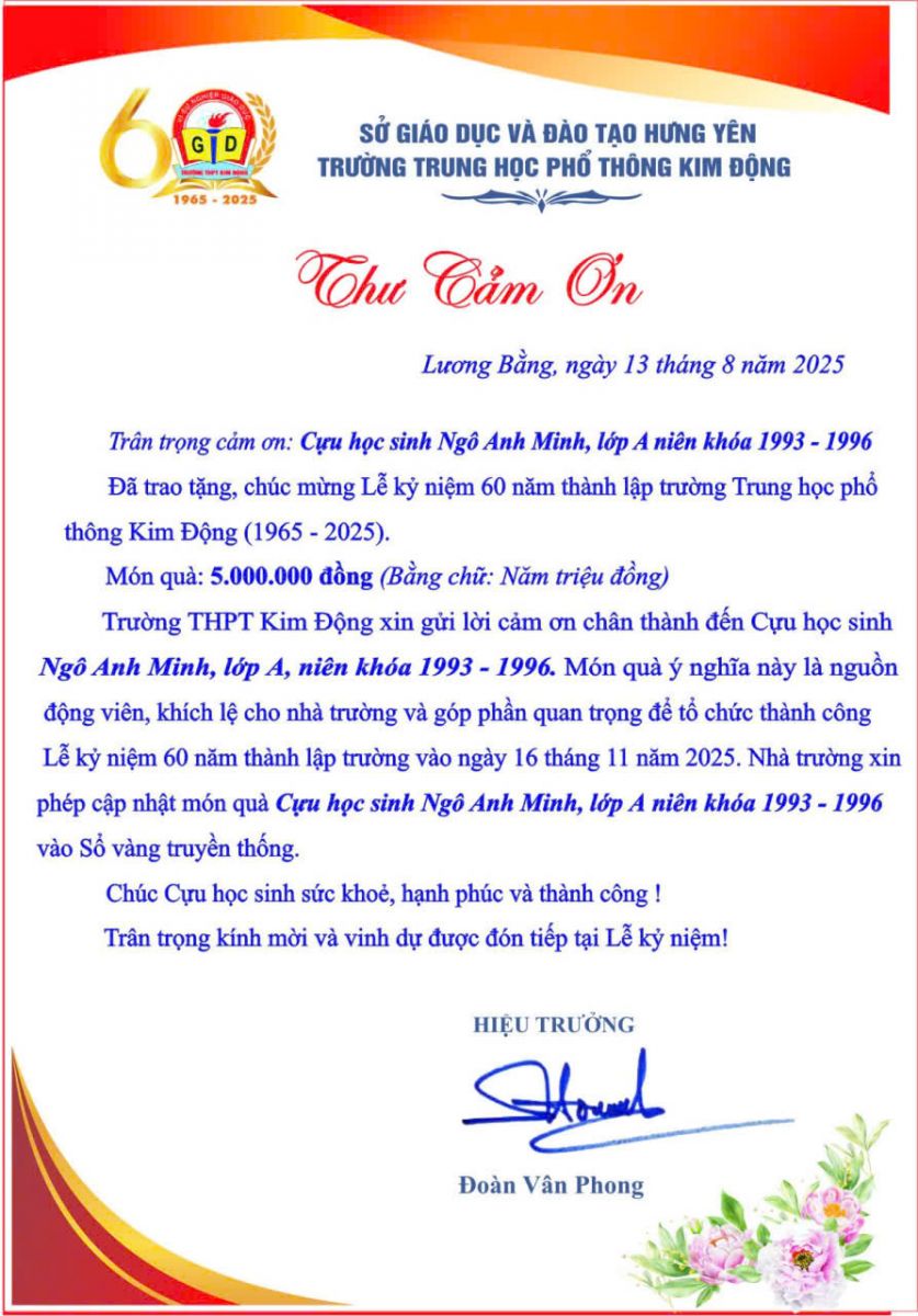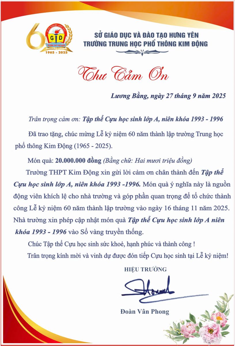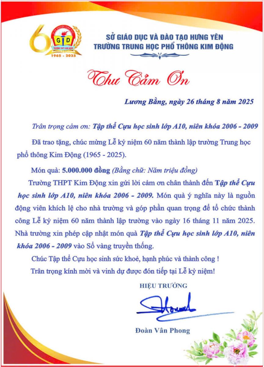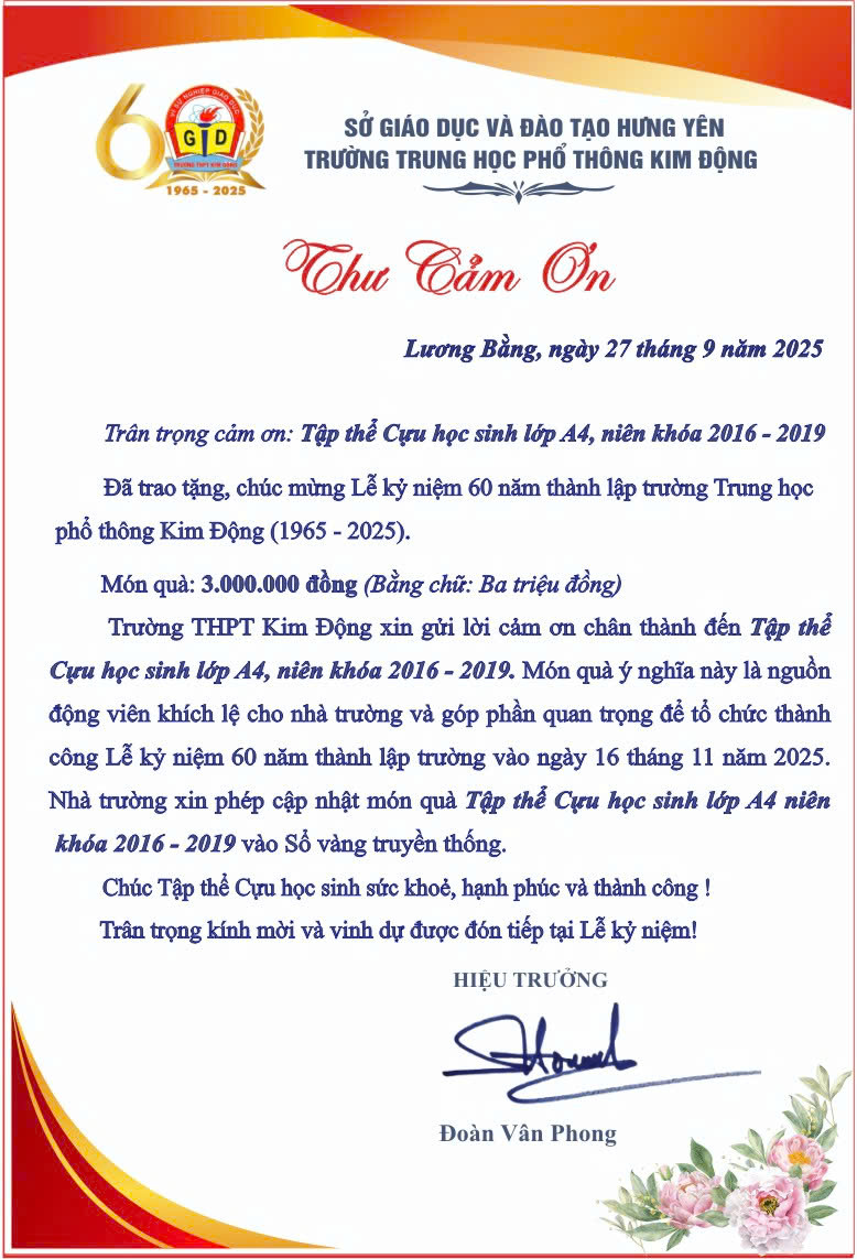 THƯ NGỎ VIẾT BÀI ĐĂNG TẬP SAN KỶ NIỆM 60 NĂM THÀNH LẬP TRƯỜNG THPT KIM ĐỘNG (1965 - 2025)(16/06/2025)