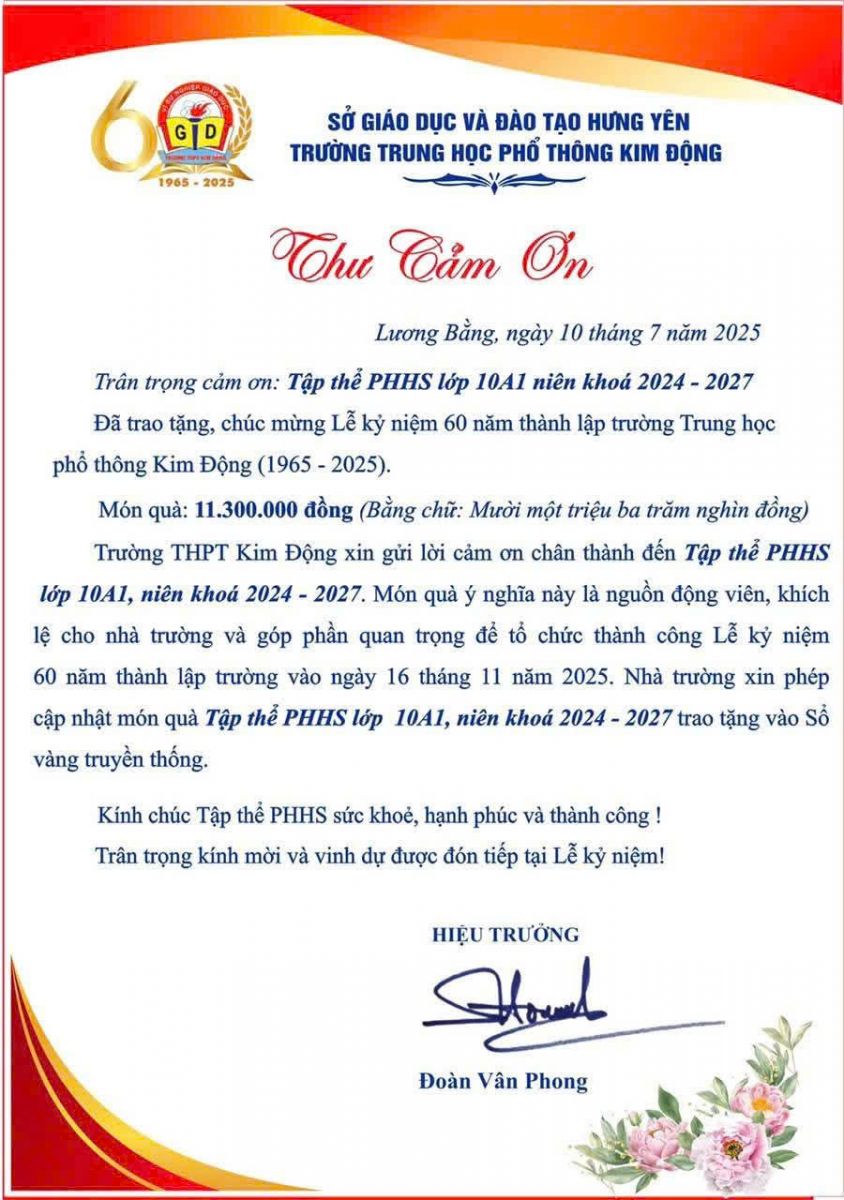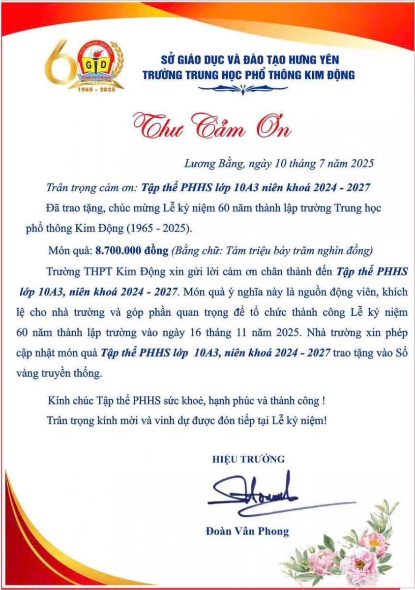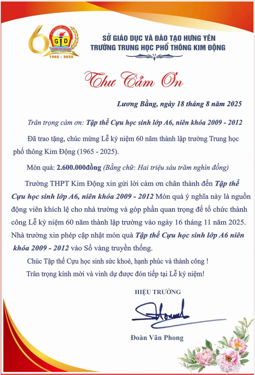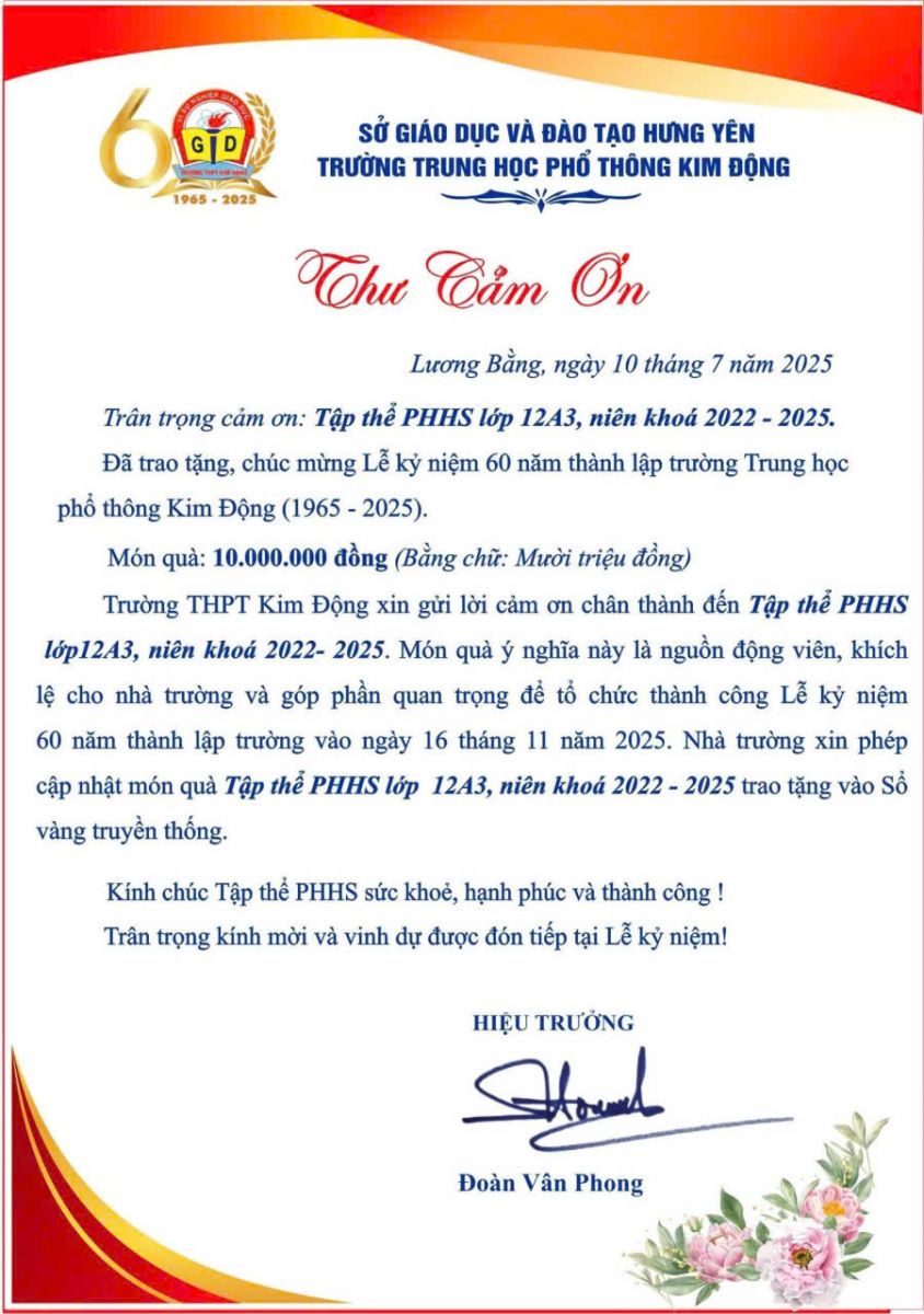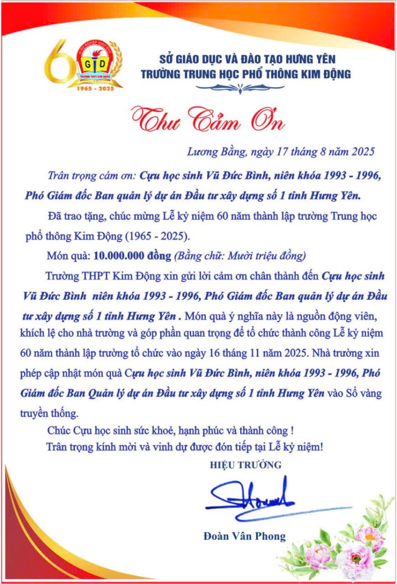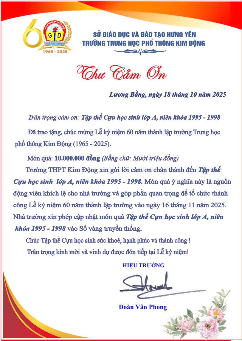 THƯ NGỎ VIẾT BÀI ĐĂNG TẬP SAN KỶ NIỆM 60 NĂM THÀNH LẬP TRƯỜNG THPT KIM ĐỘNG (1965 - 2025)(16/06/2025)