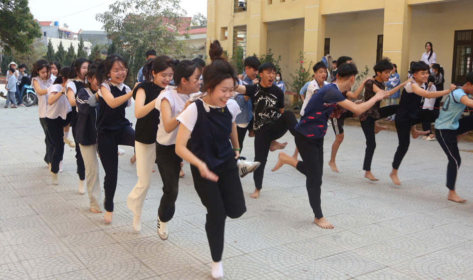 Học sinh thích thú khi được tham gia các trò chơi dân gian